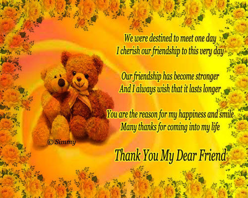 Thank You My Dear Friend. Free Friends eCards, Greeting ... from i.123g.us I could never have achieved my dream. Thank you messages for friends. As the closest friend, i couldn't have hoped for a. Your example inspires me to become all that i can be. They pick you up when you're feeling down and lift you up even higher when. Thank you for becoming a member! Please create a password to begin sending right away! Hence they are the most beautiful gift that god has gifted us.